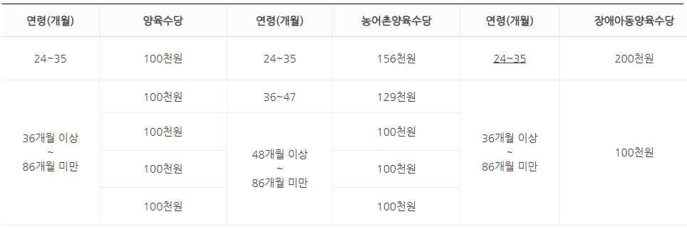 장애아동 양육수당 및 농어촌 양육수당도 별도로 지원 가능.